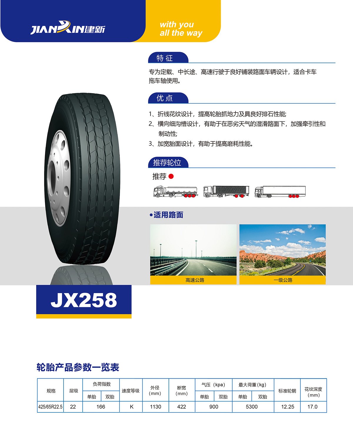 專為定載、中長距離、高速行駛車輛設計,適合卡車拖車輪使用。